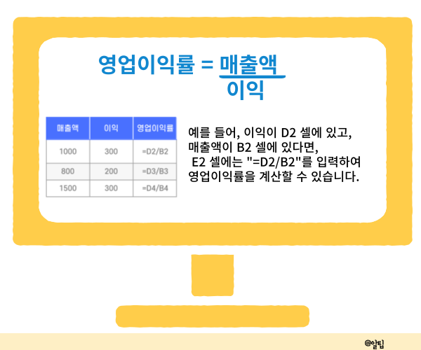 엑셀을 활용하여 간편하게 이익 및 영업이익률을 계산할 수 있습니다.